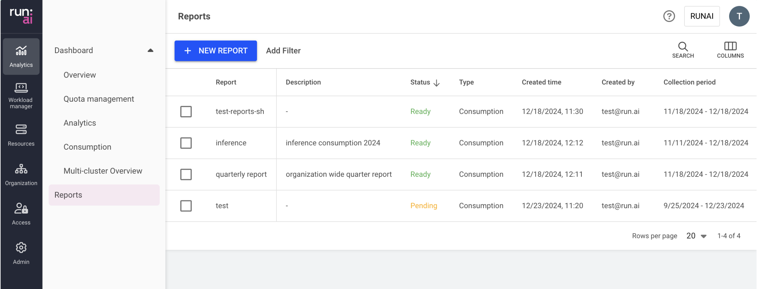 Refresh the page to see Reports under Analytics in the Run:ai platform.